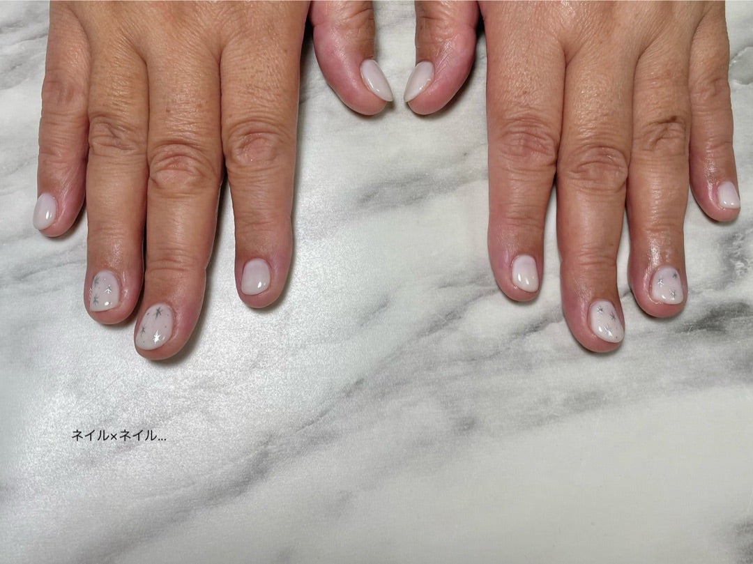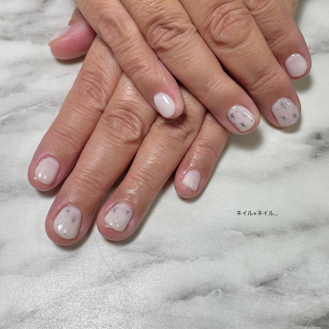 #ジェルネイル #シンプルネイル #シアーホワイトネイル #キラキラ模様ネイル #白ネイル #深爪改善 #沖縄市深爪 #ショートネイル #爪のお悩み #深爪矯正 #沖縄市ネイルサロン #沖縄市ネイルネイル #ネイルネイルゆきな #やらゆきなブログ