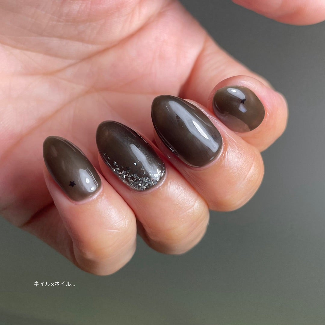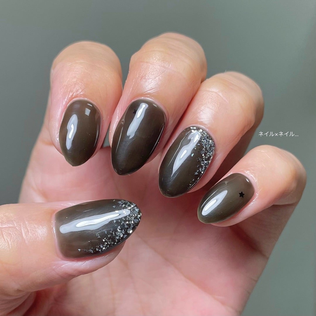 ダイヤモンドグリッターのキラキラと自己満レベルの小さな黒い星がポイント♪