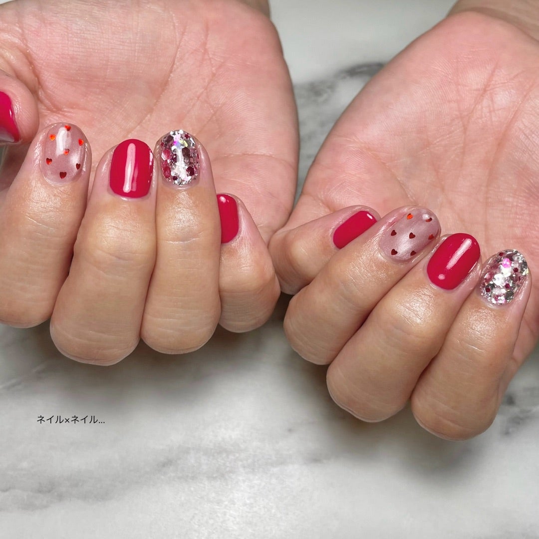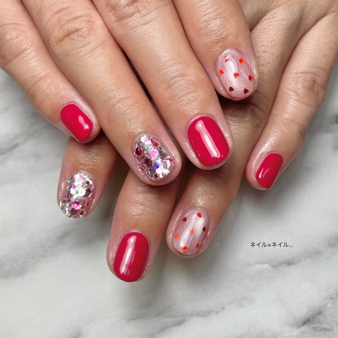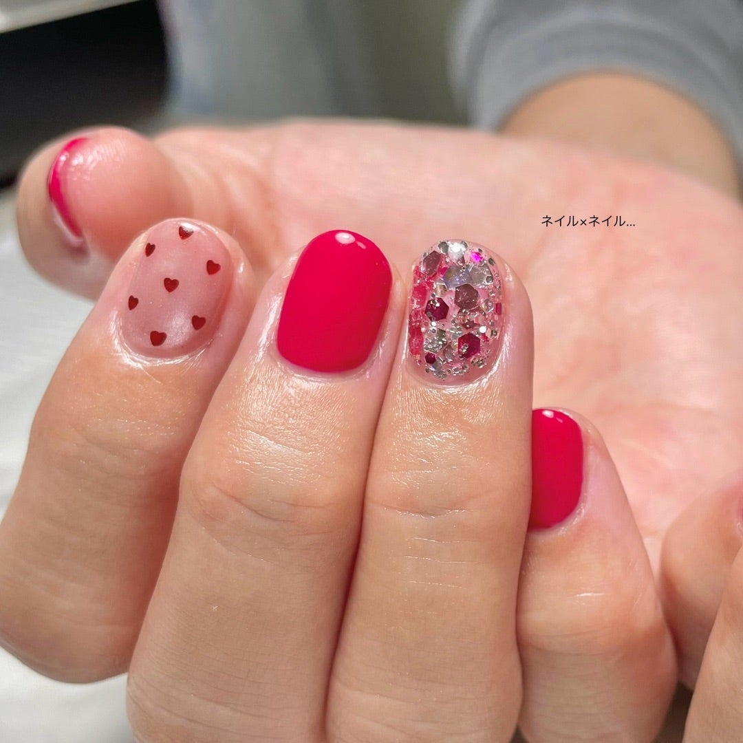 #ジェルネイル #ハートドットネイル #ミニハートネイル #ホログラムネイル #キラキラネイル #お持ち込みデザイン #ピンクネイル #沖縄市ネイルサロン #沖縄市ネイルネイル #ネイルネイルゆきな #やらゆきなブログ