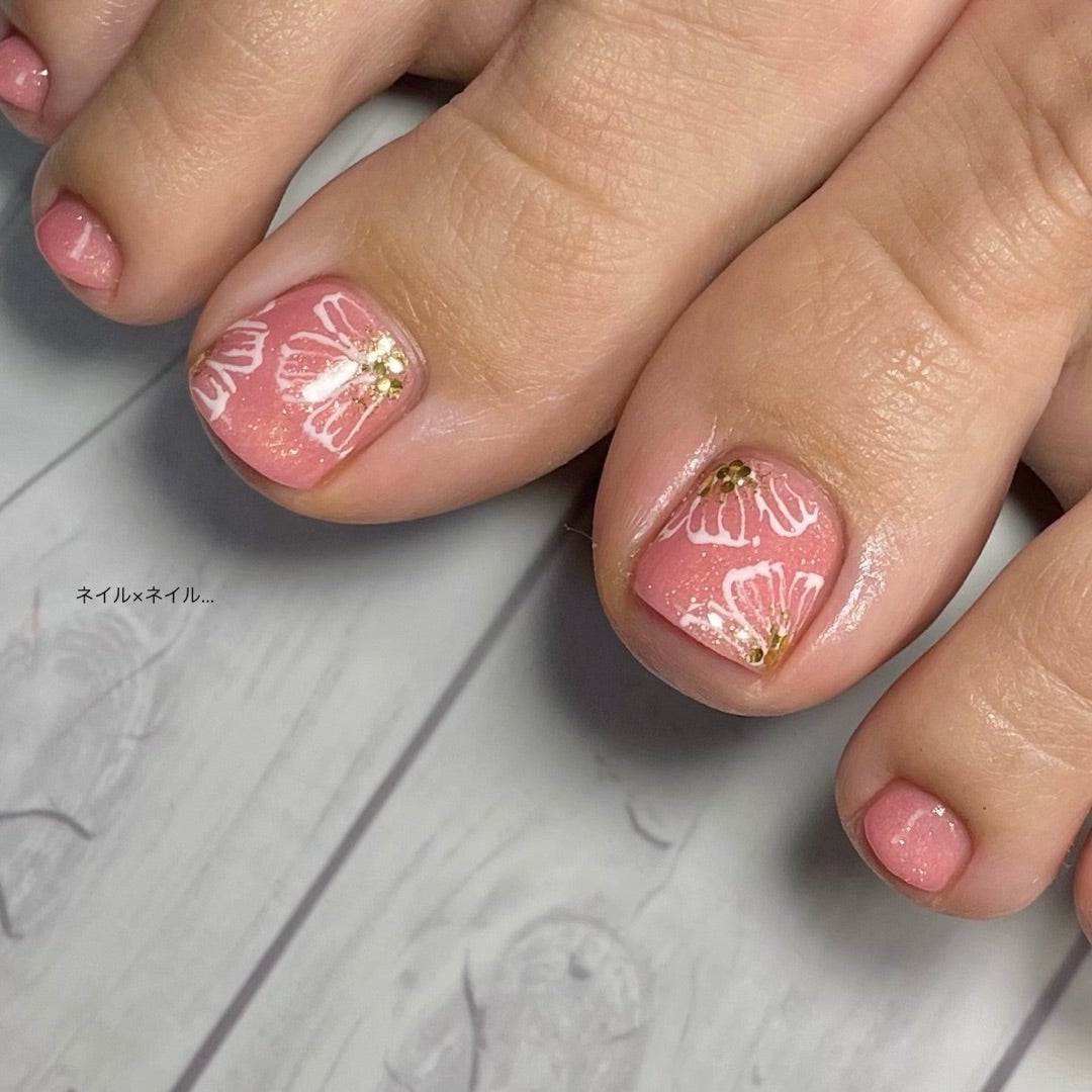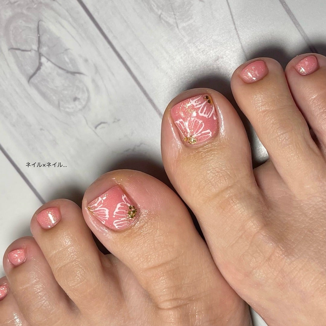#フットジェル #フットネイル #ジェルネイル #ピンクフット #ネイルアート #手描きフラワーネイル #白いお花ネイル #沖縄市ネイルサロン #沖縄市ネイルネイル #ネイルネイルゆきな #やらゆきなブログ