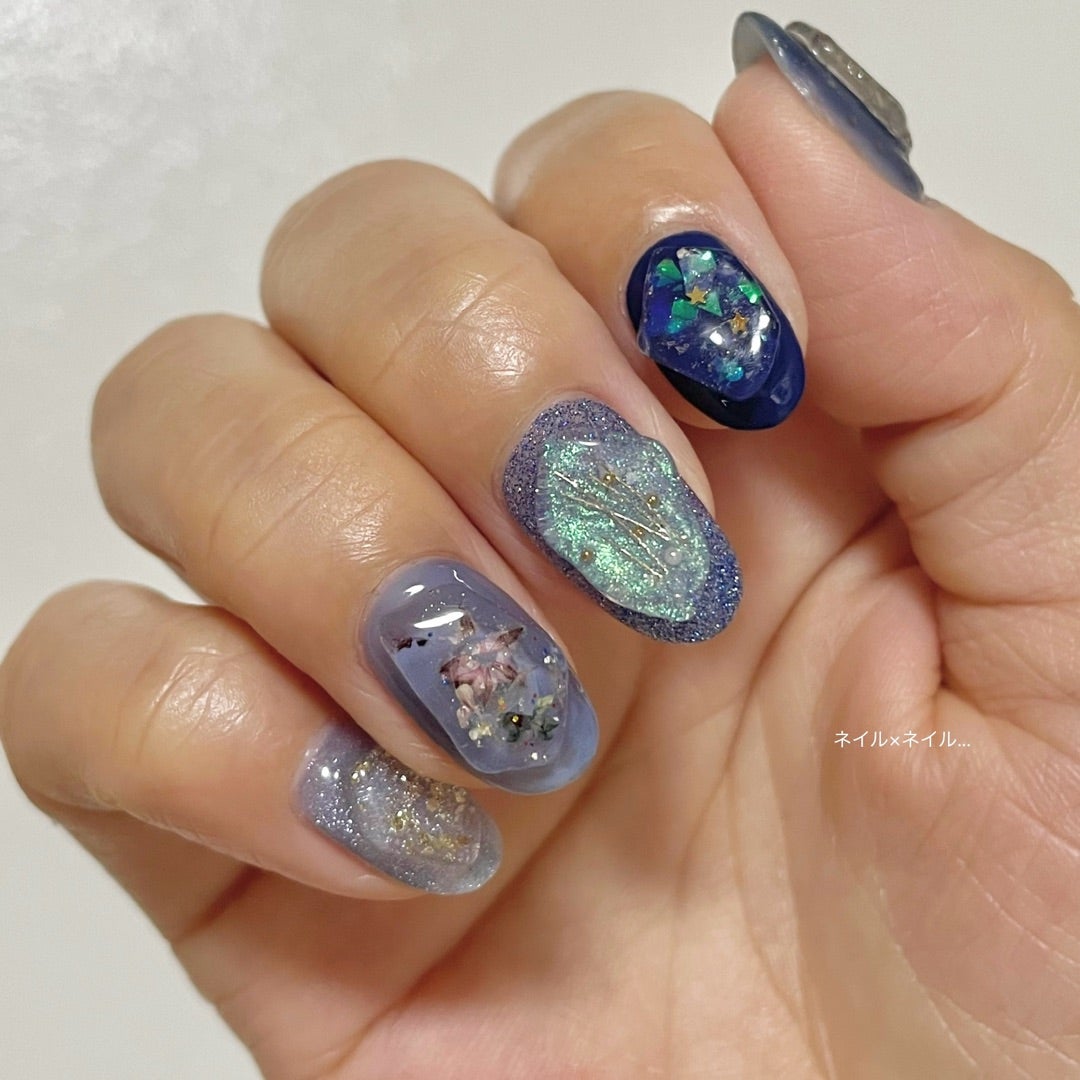 #myネイル #ジェルネイル #クラッシュタイルネイル #ガラスタイルネイル #ブルー系ネイル #立体ネイル #ごつごつネイル #セルフネイル #ネイリストネイル #使用パーツ #ネイルパーツ #ネイルショップ #沖縄市ネイルサロン #沖縄市ネイルネイル #ネイルネイルゆきな #やらゆきなブログ