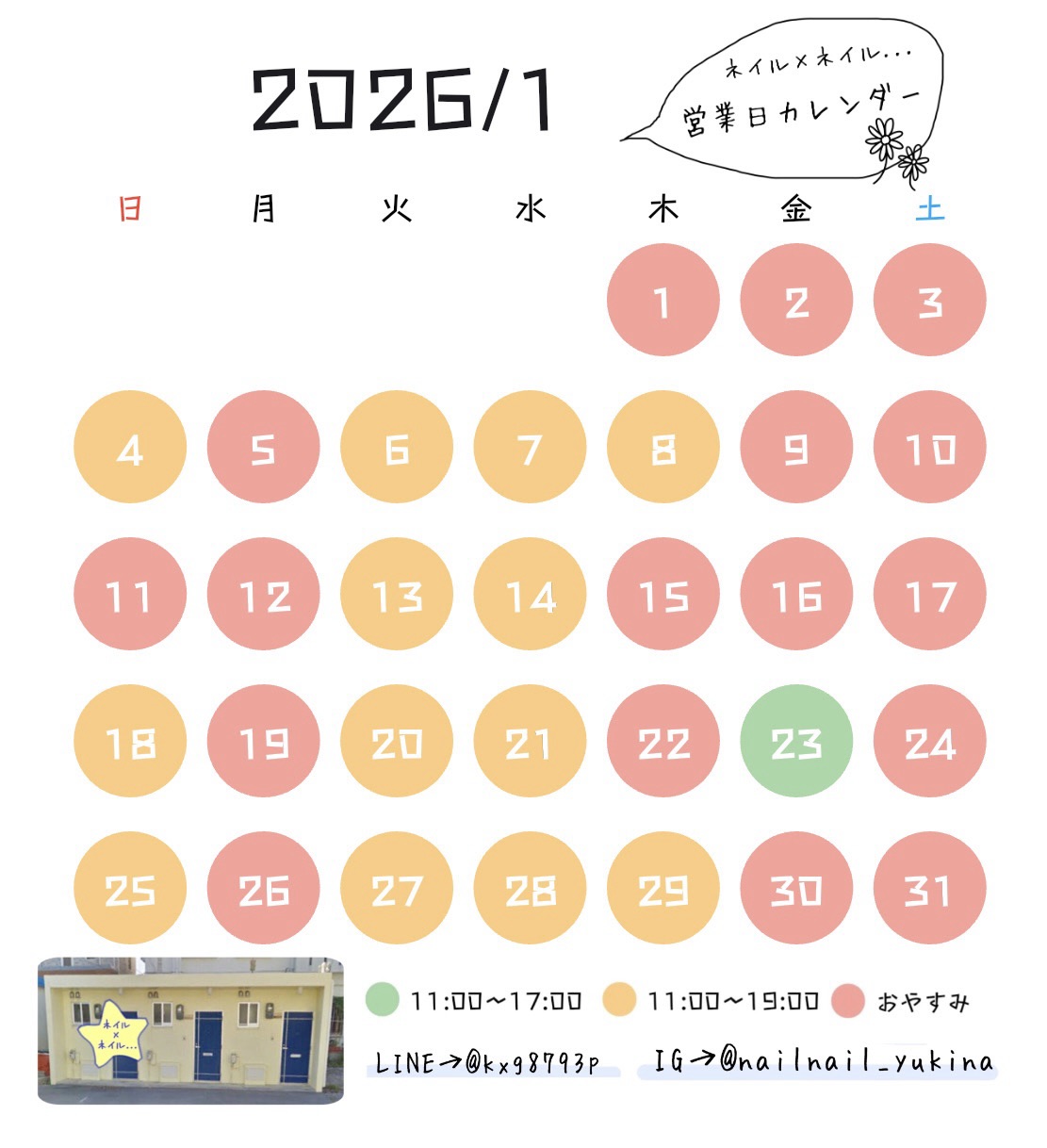 #サロンカレンダー #サロン営業日 #年末年始休業 #お知らせ #沖縄市ネイルサロン #沖縄市深爪 #沖縄市ネイルスクール #沖縄市ネイルネイル #ネイルネイルゆきな #やらゆきなブログ