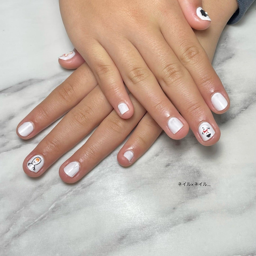 #白いマニキュア #スノーマンネイル #ネイルシール #ネイルステッカー #シンプルネイル #休日ネイル #沖縄市ネイルサロン #沖縄市ネイルネイル #ネイルネイルゆきな #やらゆきなブログ