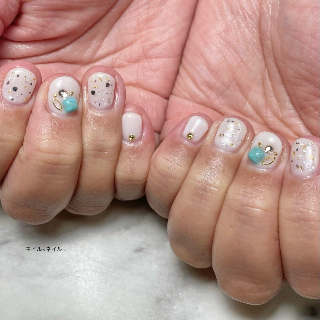 大理石パウダーとターコイズネイル