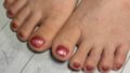 足の深爪改善:ピーチゴールドホログラムのペディキュア
