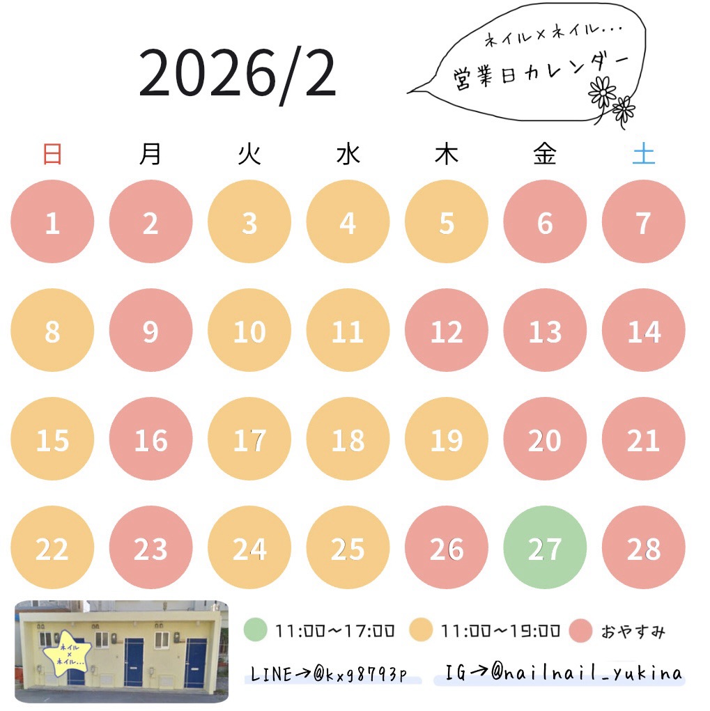 #サロンカレンダー #サロン営業日 #お知らせ #沖縄市ネイルサロン #沖縄市深爪 #沖縄市ネイルスクール #沖縄市ネイルネイル #ネイルネイルゆきな #やらゆきなブログ