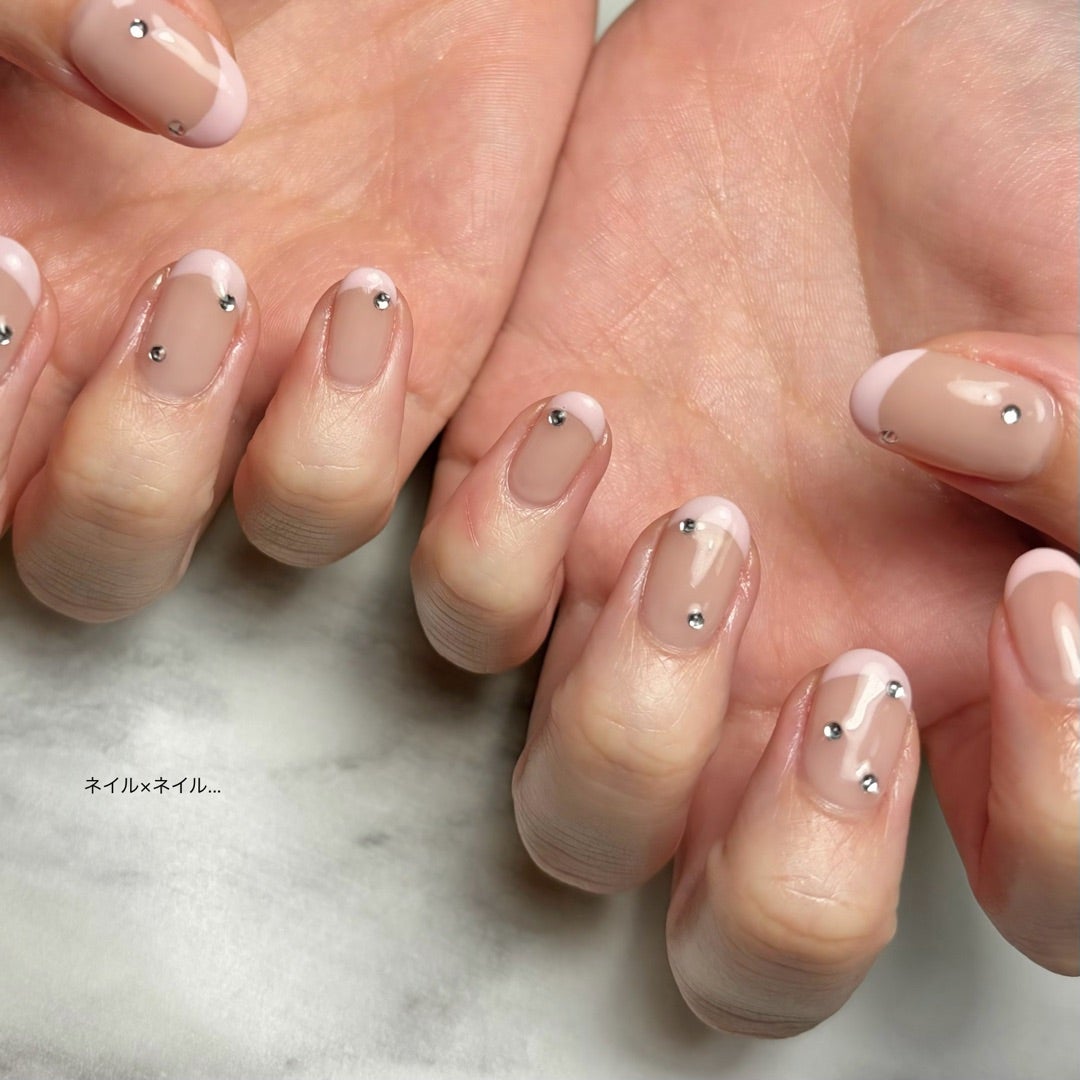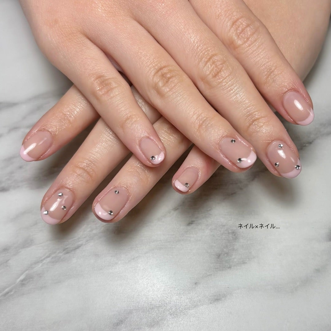 パステルピンクフレンチとストーンのネイル