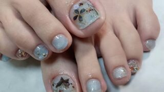 フットネイル 水色と蝶々のフットネイル 今回もスクール卒業生のたかこさんにやってもらいました*'v')ノ゙ この水色のジェル、UVで色が変わります♪ 向かって右側の足はライト照射直後なのでゴールドになっています(≧▽≦) 普段はこんな感じ♪ 太陽の下でも色... 2025.10.01 フットネイル