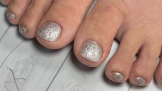 足の深爪 足の深爪改善とシルバーホログラムのペディキュア Hさん、久しぶりにシルバーホログラムに戻りました(o´ω`o) 左右の親指の他、深爪になっている爪をアクリルで作っています↓ パールホワイトのマニキュアにシルバーホログラムを散りばめて出来上がり♪ Hさん、い... 2025.10.04 足の深爪